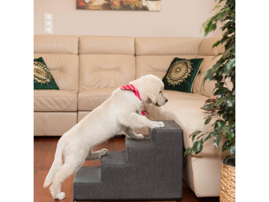 Praktické a stabilní schody pro psy INARI - skvělá pomůcka, která usnadňuje pohyb vašim domácím mazlíčkům při lezení na různá vyvýšená místa např.na postel, pohovku, na která by jinak museli vyskakovat. Tyto lehké molitanové schody jsou také vhodné pro starší psy a kočky s kloubními problémy.